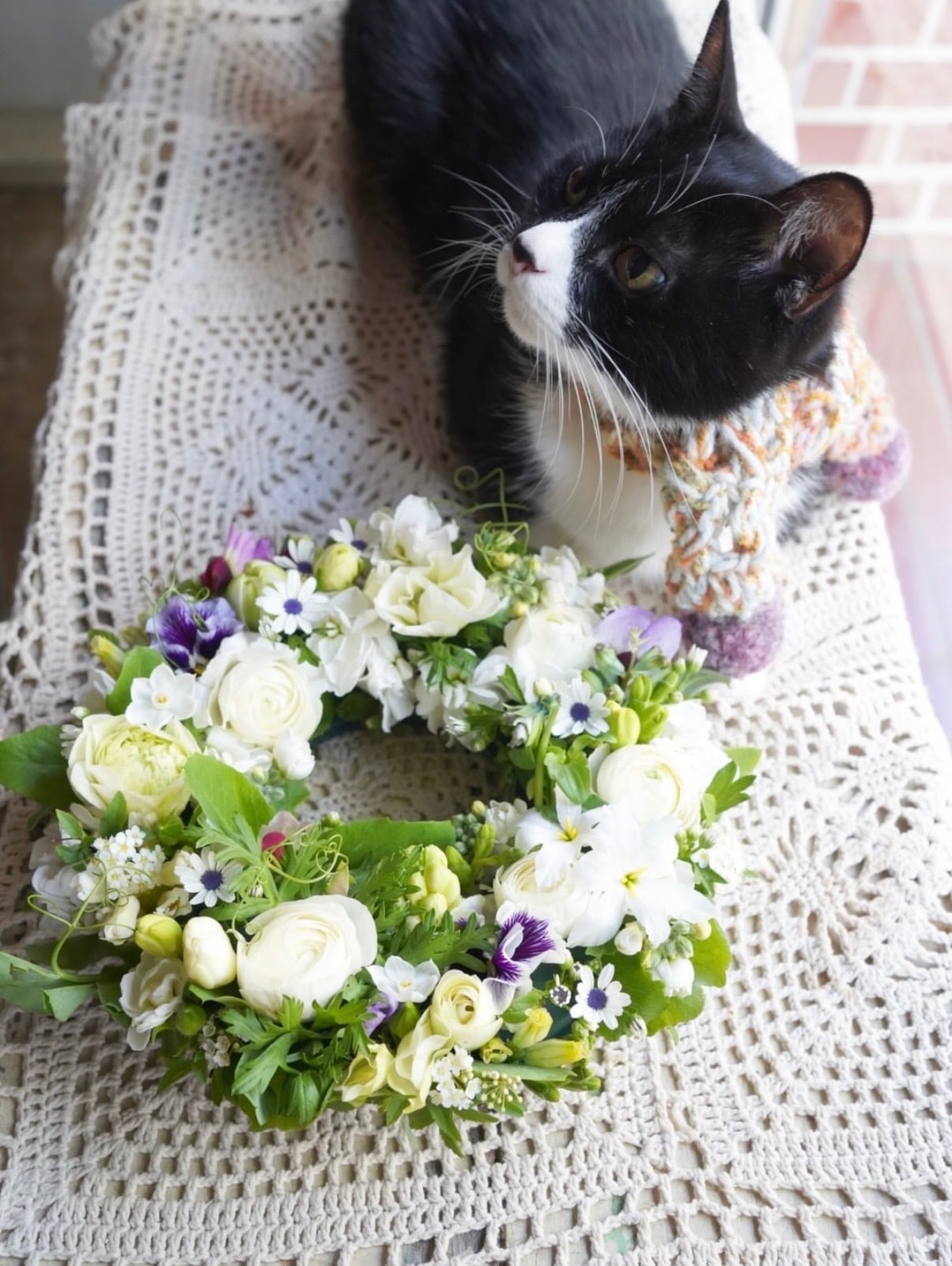 白い球根花たちをた〜っぷり集めてリースに仕上げます♪